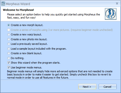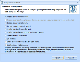 basic morphs. If you are just learning to use Morpheus Photo Animation Suite, it is recommended that you leave Beginner Mode Menus checked in order to