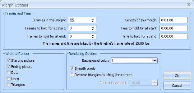 Preview All Frames allows you to see a thumbnail of every frame of your morph in the Timeline window.