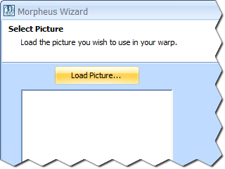 On the second page of the wizard, you will load the picture you wish to use in your warp. Click the Load Picture button above the picture preview box to select the picture file you want to load.