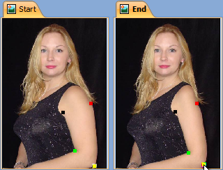 Here we have moved the red dot inward somewhat in order to make the arm appear smaller. Notice that the ending picture updates itself automatically as you move the dot, to show you what the final frame of your warp will look like.