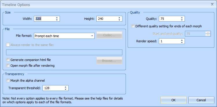 Images such as transparent GIFs and 32bit PNGs can be animated and will use the background color from the Morph Options window in conjunction