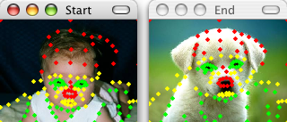 We want the head and nose features to come from the picture of the dog, which is in the picture window labeled End, which is why we selected End