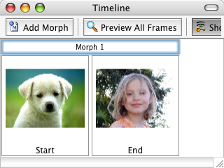 Preview All Frames allows you to see a thumbnail of every frame of your morph in the Timeline window.