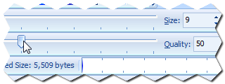 Look at the File Size Information and Transfer Time toolbars, pictured here. You can quickly tell how big the compressed picture