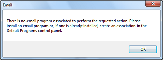 On Windows 7 or later, you may see this screen, indicating that you have no email software installed. Windows 7 does not come with any email program by default. This most likely means that your current email configuration is entirely web based.